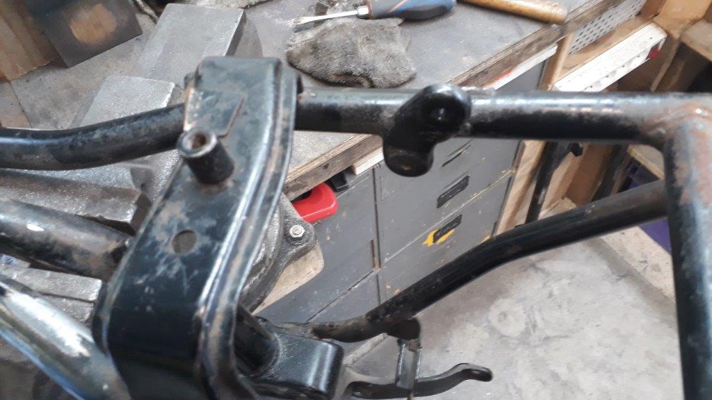 les pattes de support de centrale cligno, retour auto des cligno, fusible (sous la traverse), support de contacteur de feu stop arr, retour de la patte de support du resé d'huile ; toutes ces pattes sont soudées par points. voici comment j'ai fait :